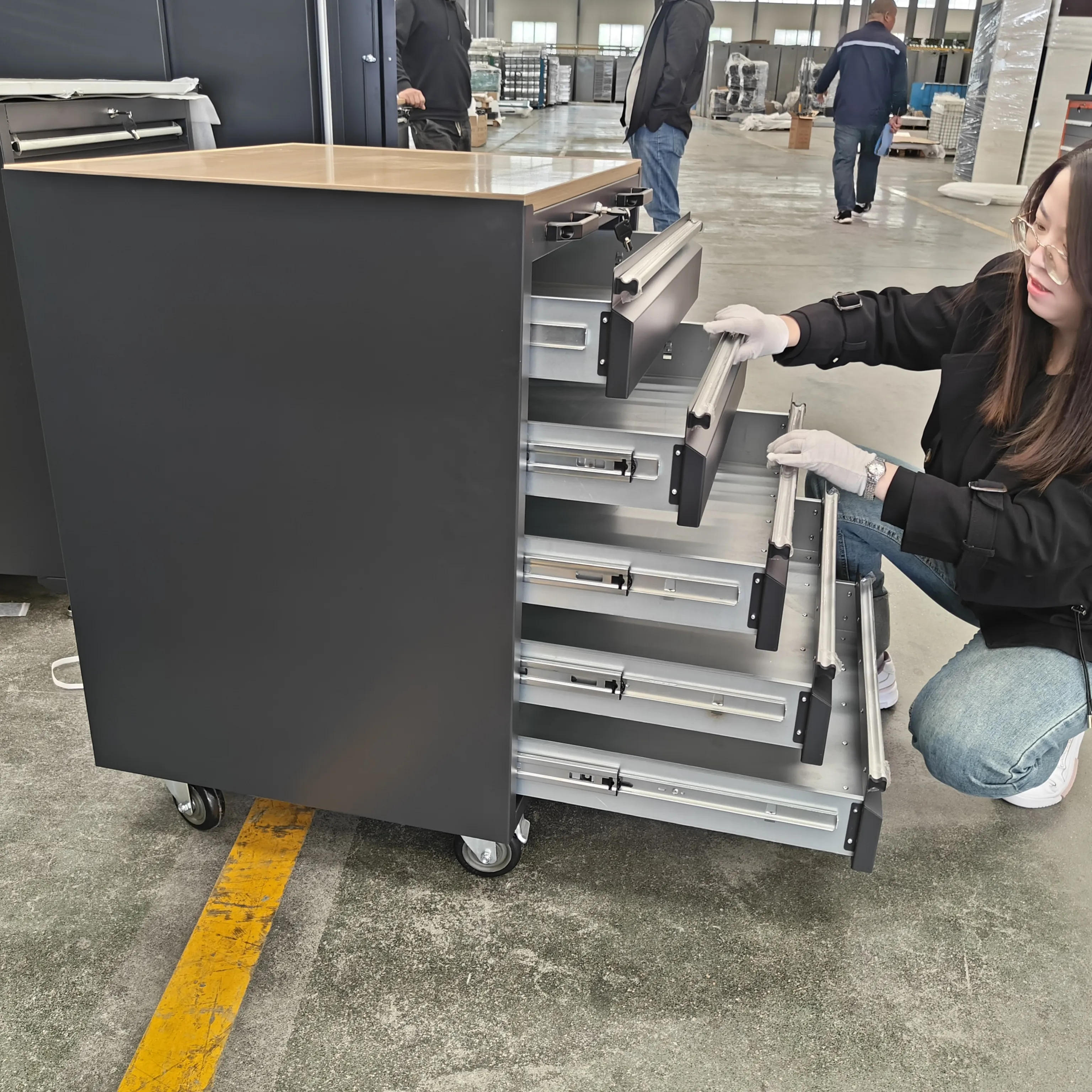 The drawers of the heavy-duty tool cabinet are equipped with silent sliding rails, ensuring no noise when opening or closing the drawers.